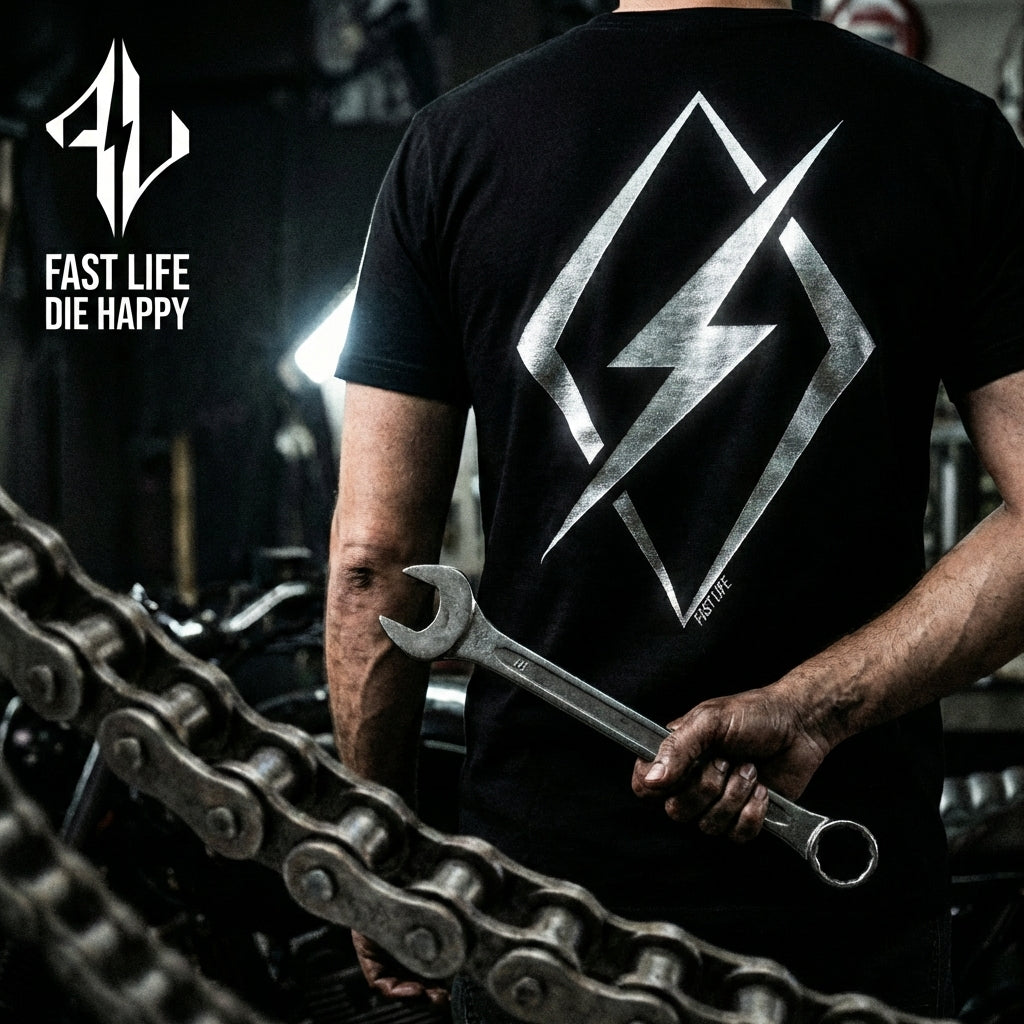 Fast Life Die Happy is built for the ones who live wide open — riders who don’t slow down, don’t blend in, and don’t apologize for the life they live. The brand was born out of the motorcycle community and built on speed, rebellion, and grit.